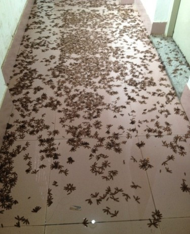 中山校園大學(xué)學(xué)生在新浪微博上感嘆,飛蟻數(shù)量居然多到讓小伙伴不慎品嘗了一只。大家紛紛用書(shū)本等拍打,有同學(xué)甚至想在宿舍養(yǎng)青蛙。