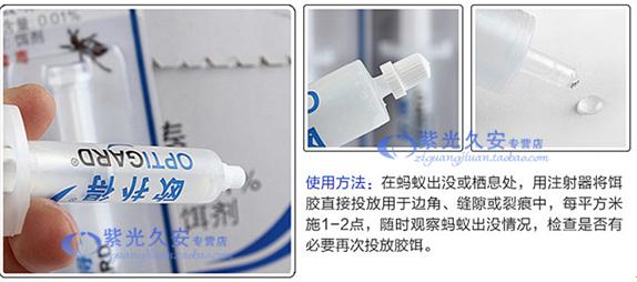 歐撲得滅蟻膠餌使用方法很簡單,在螞蟻經(jīng)常出沒或棲息處,用注射器將餌膠直接投放在邊角、縫隙或裂痕中,每平方米施1--2點(diǎn),隨時(shí)觀察螞蟻出沒情況,檢查是否有必要再次投放膠餌。